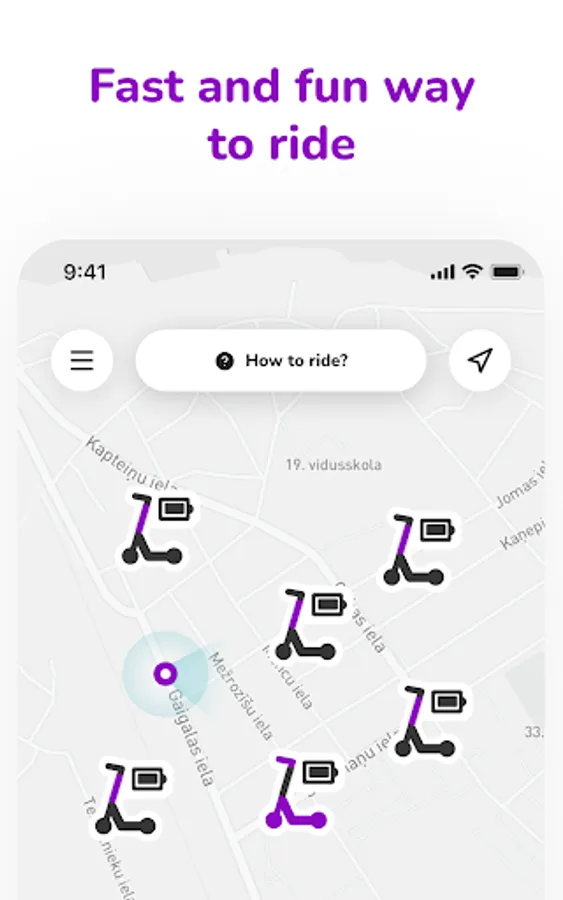 2.Open the app to find the nearest Bodaz scooter using the map feature.