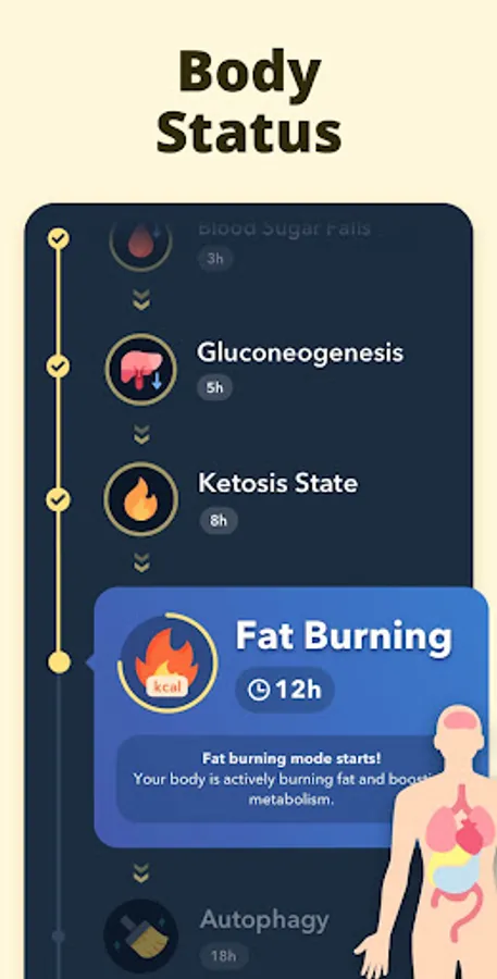 With various fasting plans, fasting tracker is suitable for beginner and experienced, men and women. It guides you through your plan. No need to change your diet, you can easily stick to it. If you are under 18 years old, pregnant or breastfeeding, have health issues or are underweight, please ask your doctor for advice before fasting.