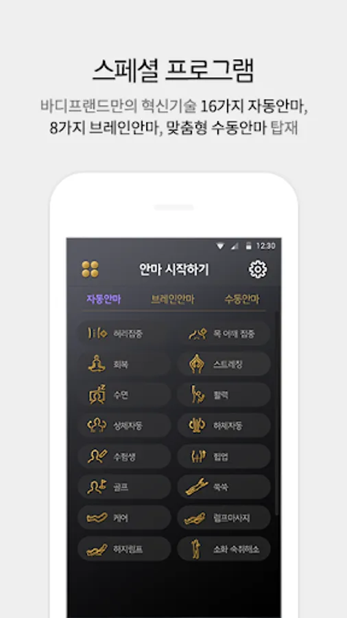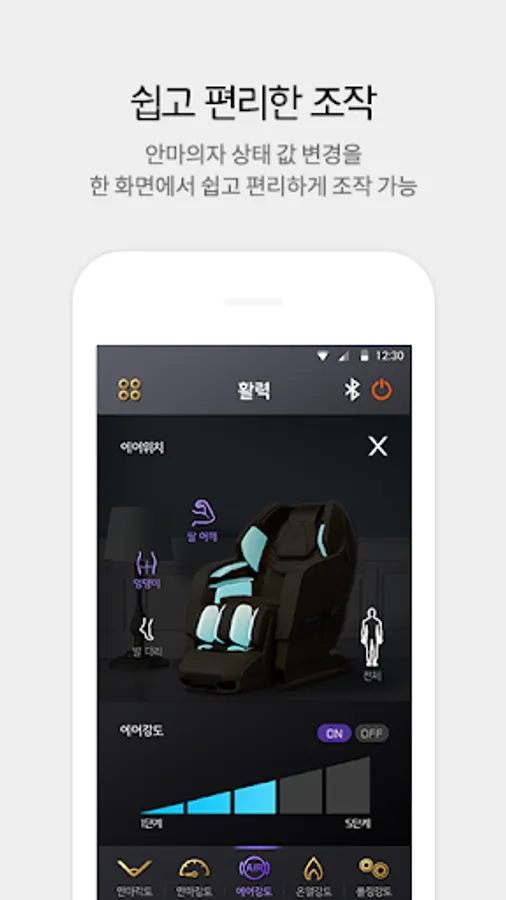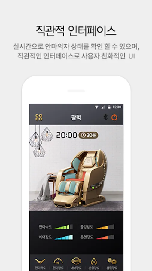 Change the massage chair's status, such as massage intensity and location, conveniently on mobile