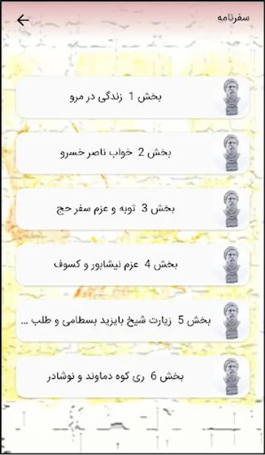 This changed Nasser Khosrow's way, giving up the wine and the demonic occupation and embarked on a journey. His first mission was Mecca, and from there he traveled to "Azerbaijan", "Armenia", "Asia Minor", "Levant" and "Tunisia" and settled in Egypt for several years.