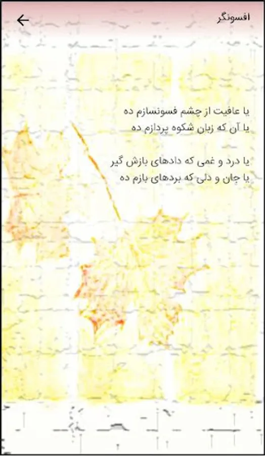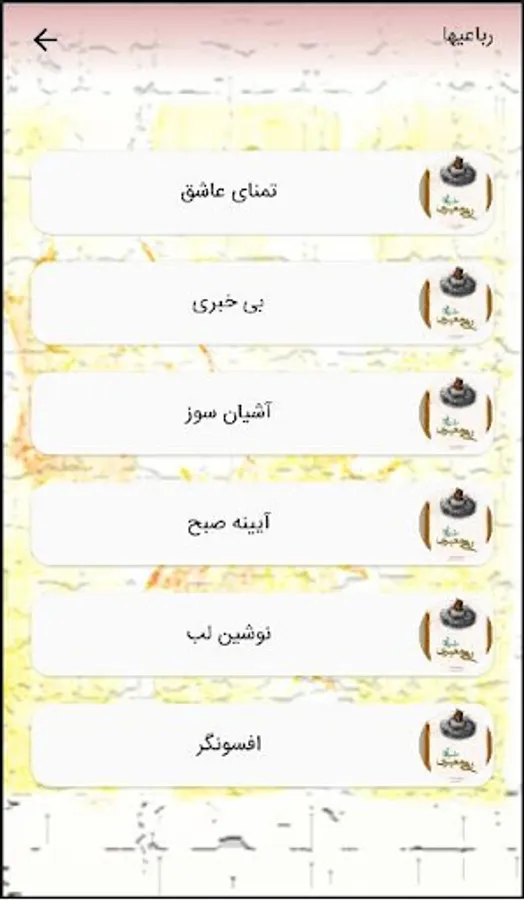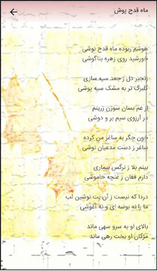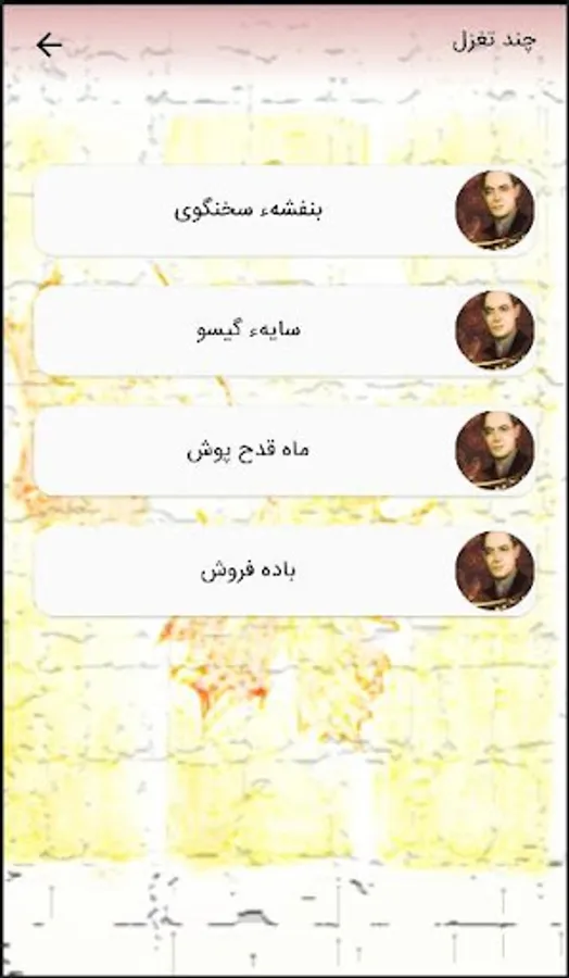 Of his literary endeavors, he says, "I have works in all sorts of poetry, such as sonnets, rhythms, Masnavi, quatrains, and so on. I wrote the first song in year 2 on Mr. Badiezadeh's song" Ugh Khuzan ". Was.