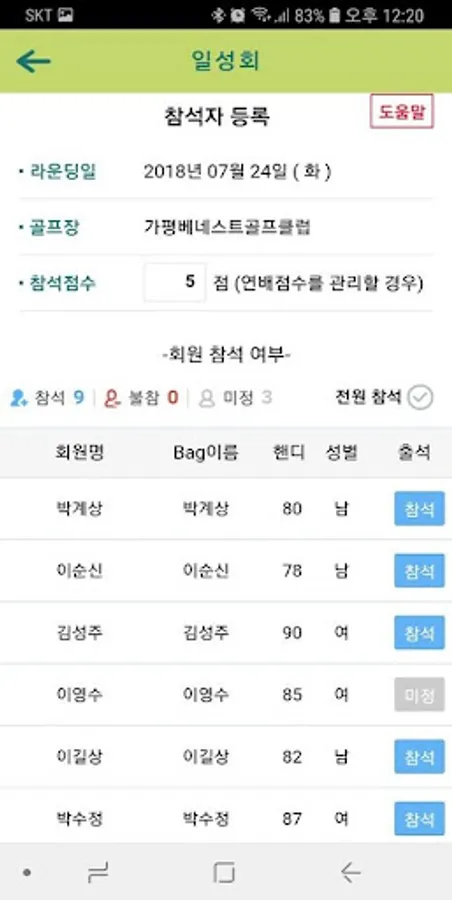 Send a letter to the golf course for group formation (automatic)