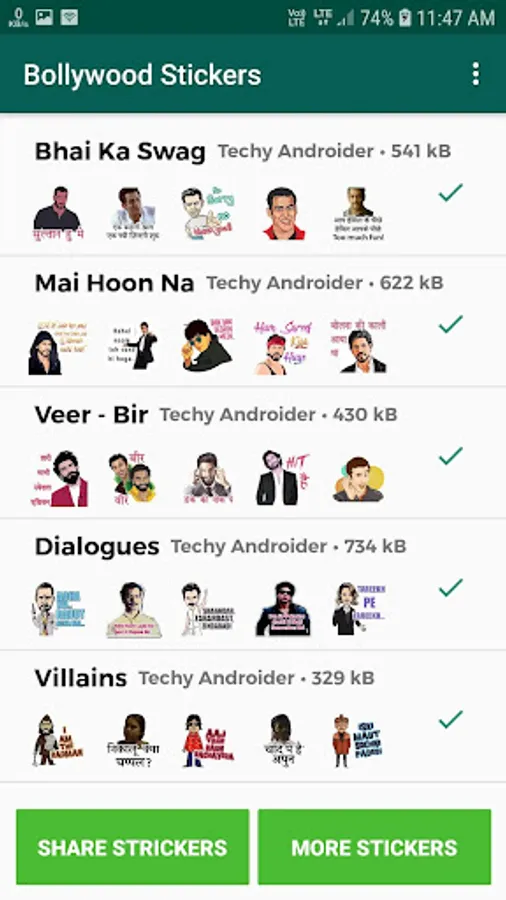 Following Packs in our application contains 210+ Stickers.