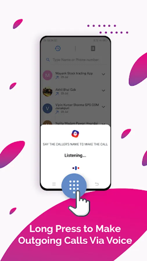 With Vani Dialer, Hands free calls are easy to make, all you have to do is speak contact name. Just Long tap the Keypad button in Dialer Screen and speak out the caller name.