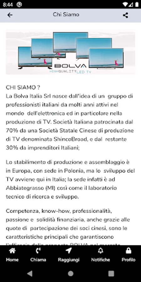 Bolva Italia Srl was born from the idea of a group of Italian professionals for many years active in the world of electronics and in particular in the production of TV. Italian company sponsored by 70% by a Chinese state-owned TV production company called ShincoBroad, and by the remaining 30% by Italian entrepreneurs;