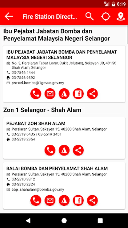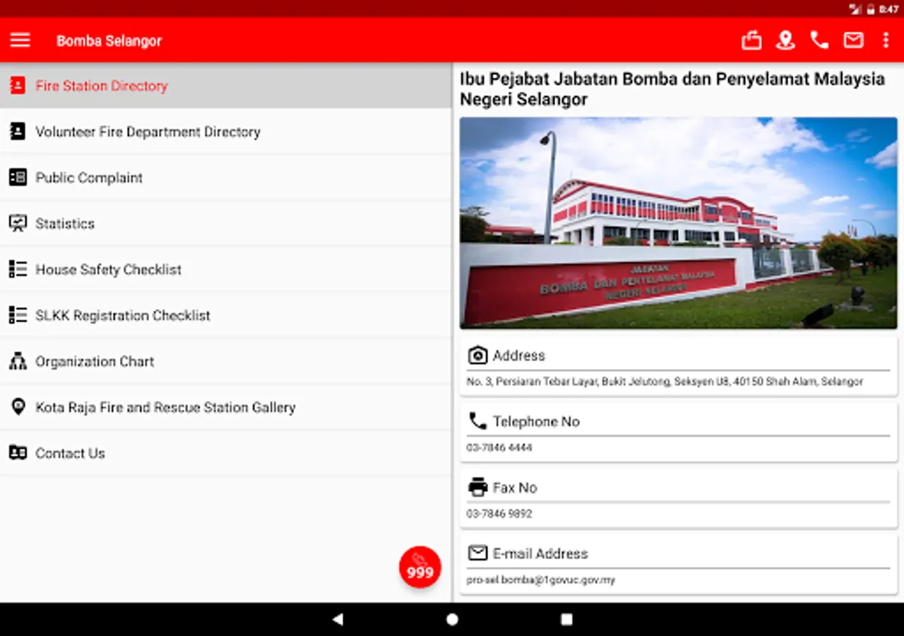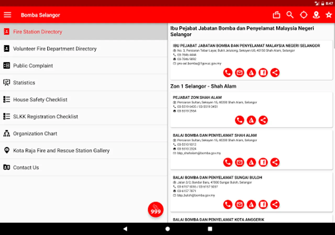 - Selangor Fire and Rescue Station Directory with GPS application and direct call to station application and Facebook