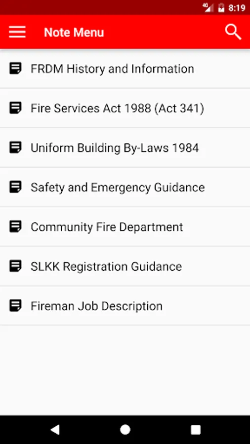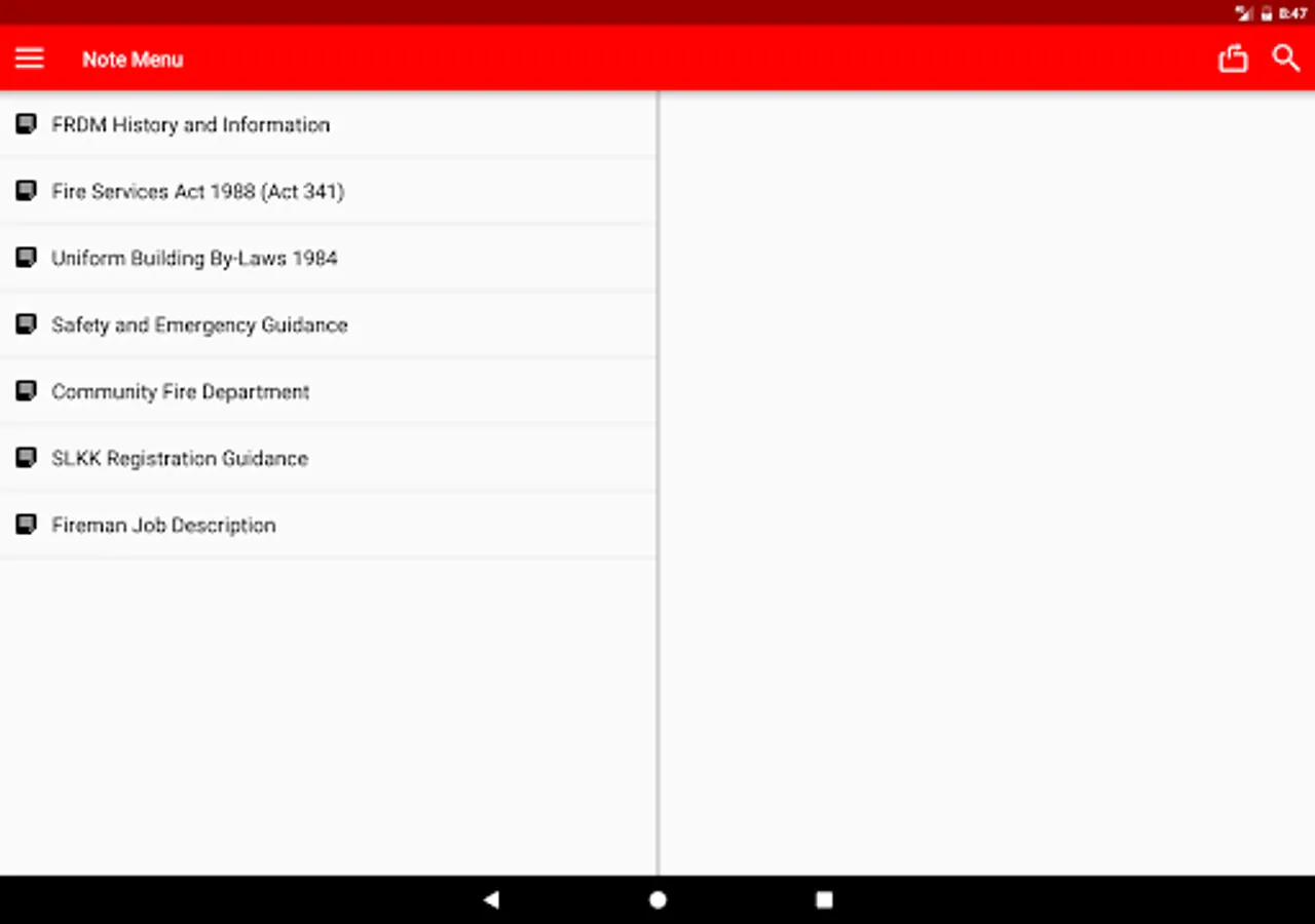 Selangor Fire and Rescue Department Firefighting Application contains: