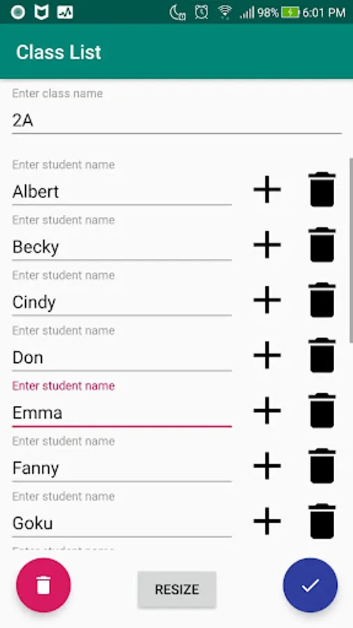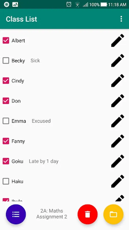A simple app that allows you to keep track of student submissions or attendance as an alternative to paper-based checklists. Add student names into a class, and select the desired class when creating a new list.
