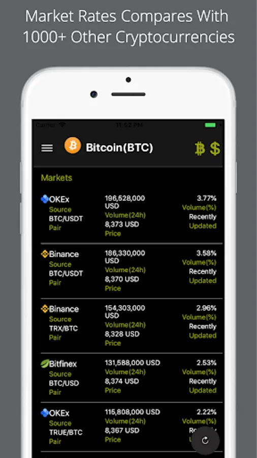 Features of Bitcoin Price App: