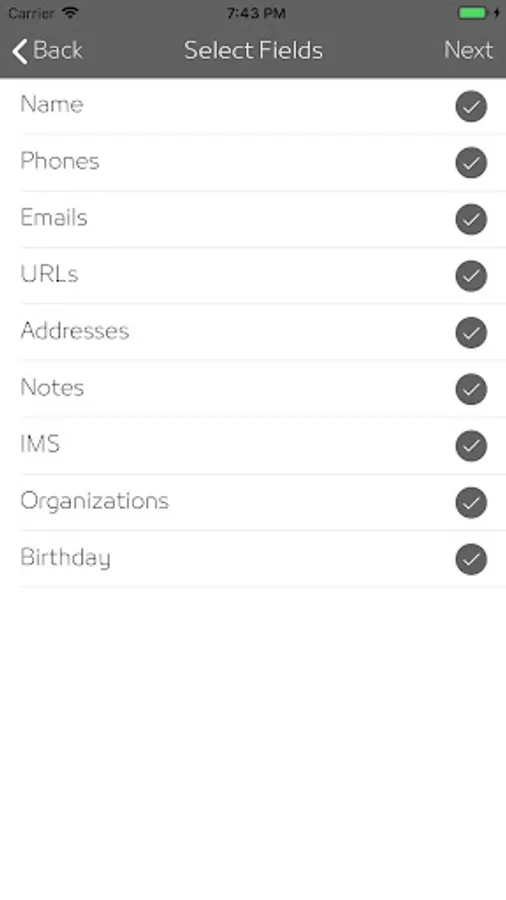 Transfer contacts with a single click. You can export all contacts into vCard(file with VCF extension) and can send as email to keep it save online.