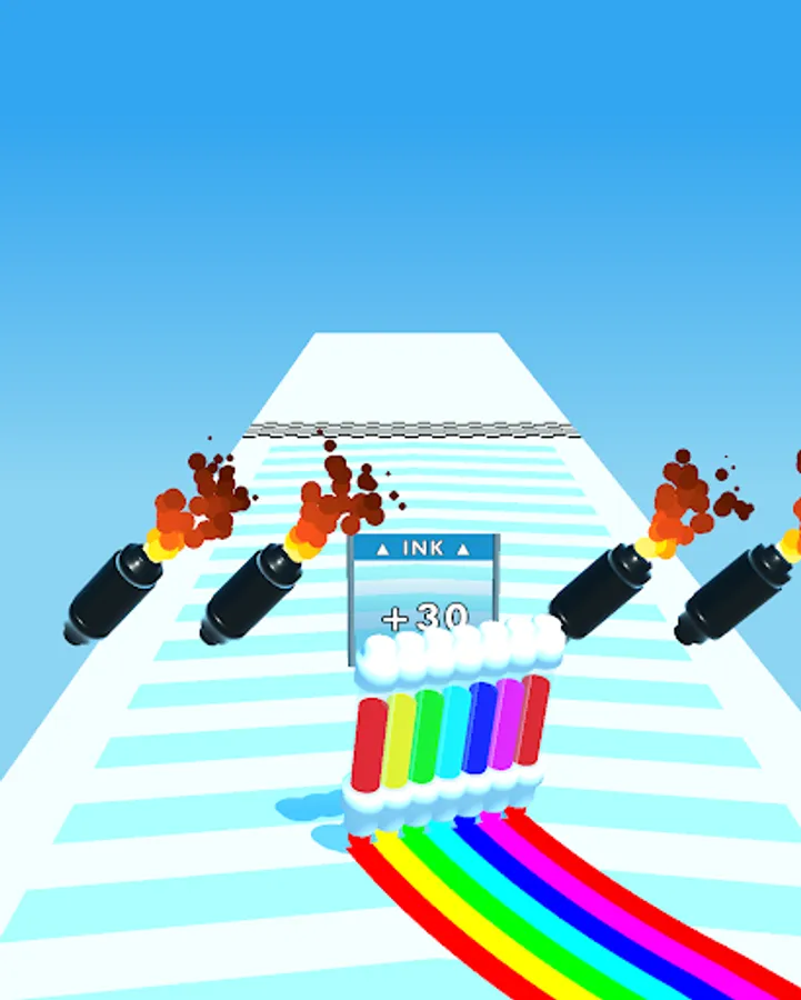 Aim for the goal without running out of ink, and draw a colorful rainbow.