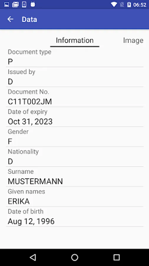 After having entered the Passport Nr. / Date of birth / Date of expiry place your smartphone on the inner cover of your passport. Try both the front and the back until a progress bar appears. After some seconds you will see your name and your picture appear on the screen.