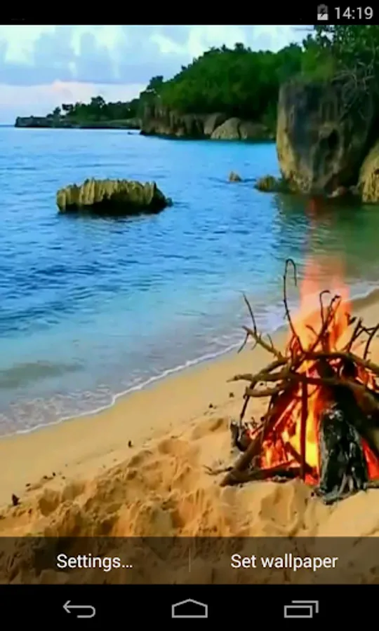 Incredibly beautiful and modern video wallpaper with bonfire on the beach.