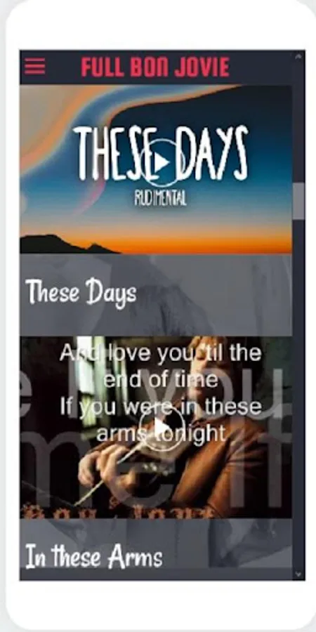 All songs that are sweet and pleasant to listen to are sung by Bon Jovi are in this application.