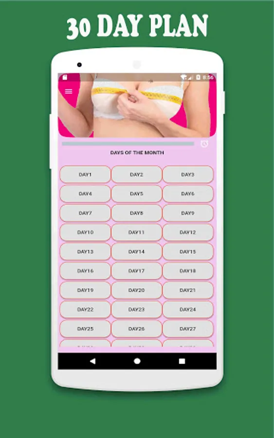 Boobs app is breast enlargement exercise for women. It is also a breast firming exercise and breast lifting exercise at home. The app presents exercises to lift sagging breasts by strengthening muscles around the breast and boobs area, this strengthened muscles will help in supporting the boobs making them to look rounder and bigger. Daily exercise targeted at surrounding breast muscles is highly important for breast health and well-being of the woman and her boobs. Breast increase workout for women at home in 30 days.