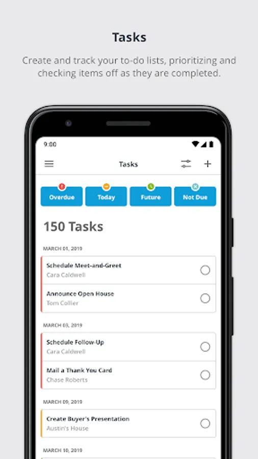 - Set up reminders for important tasks and be notified immediately as they become due.