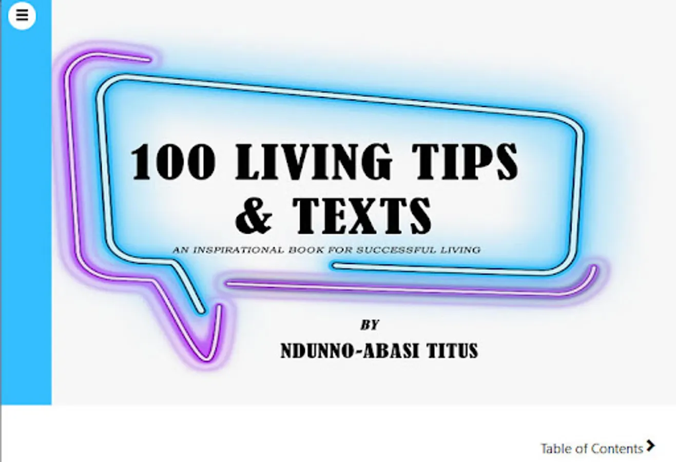 The 100 LIVING TIPS AND TEXTS is indeed the gospel in a nut shell, the Bible in a sketch, the best known nugget for quality Christian living and relationship with God and the most authoritative scriptural document for easy handling, assimilation and use. It will really get you excited always.