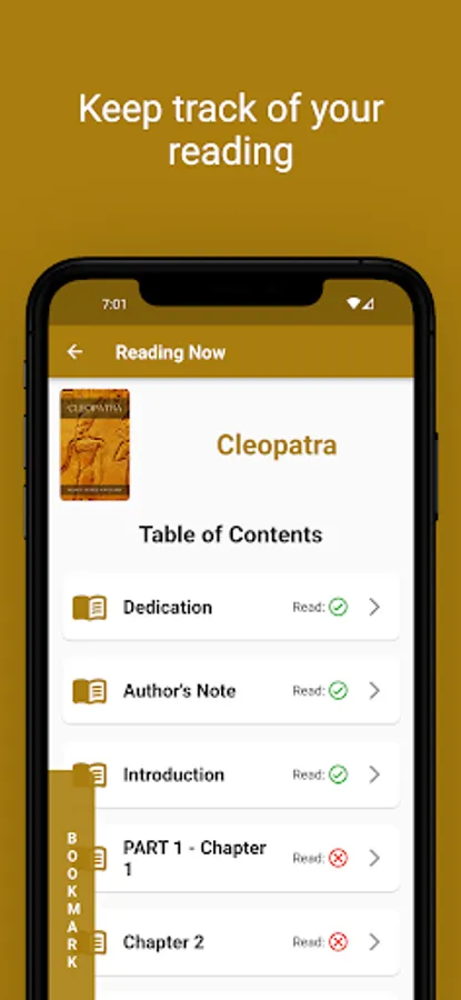 Never lose your place again. With our innovative chapter tracking, you can easily mark each chapter as you finish it. Keep track of your reading progress with a simple tap of a button.