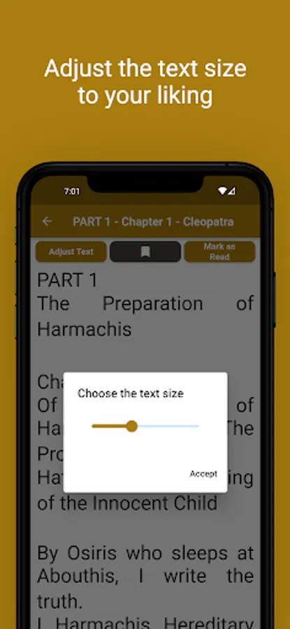 Prioritize your comfort while indulging in the gripping narrative. Adjust the text size to suit your preferences. Whether you prefer smaller fonts to read more on one screen or larger fonts for better visibility, we've got you covered!