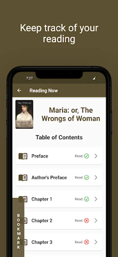 Our app brings 'Maria: or, The Wrongs of Woman', a groundbreaking novel by Mary Wollstonecraft, right into the palm of your hand. This narrative, which boldly confronted 18th-century attitudes towards women, comes alive on your screen, inviting you to explore and engage with Maria's stirring story of resistance. Download now and dive into the brave world of 'Maria: or, The Wrongs of Woman'.