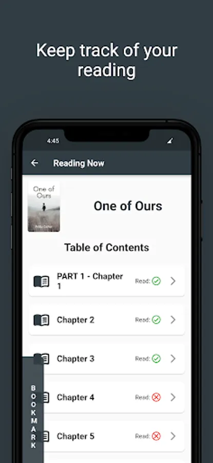 What if you have to stop reading suddenly? Just drop a bookmark! You can assign a bookmark to the chapter you're currently reading and return to it quickly later. It's like putting a pin on a map of your reading journey.