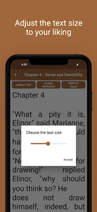 Whether you prefer smaller text or need larger print to read comfortably, our app has you covered. Adjust the text size according to your comfort and enjoy an ergonomic reading experience. No more straining your eyes or scrolling endlessly!