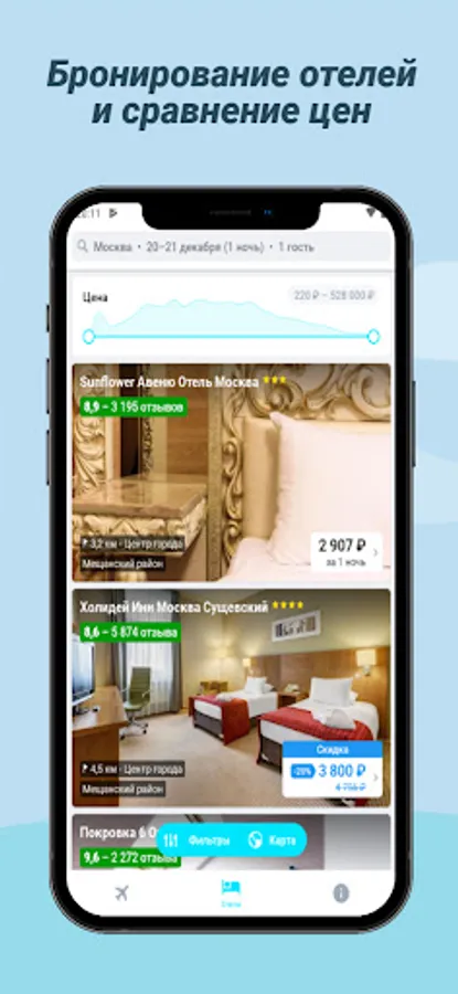 Booking hotels in Russia is the most convenient service that allows you to compare prices for hotels in Moscow, St. Petersburg, Russia and the world, as well as hostels and apartments around the world, provided by leading booking systems (airbnb, booking com, tophotels/tophotels, trivago, agoda , island and others).