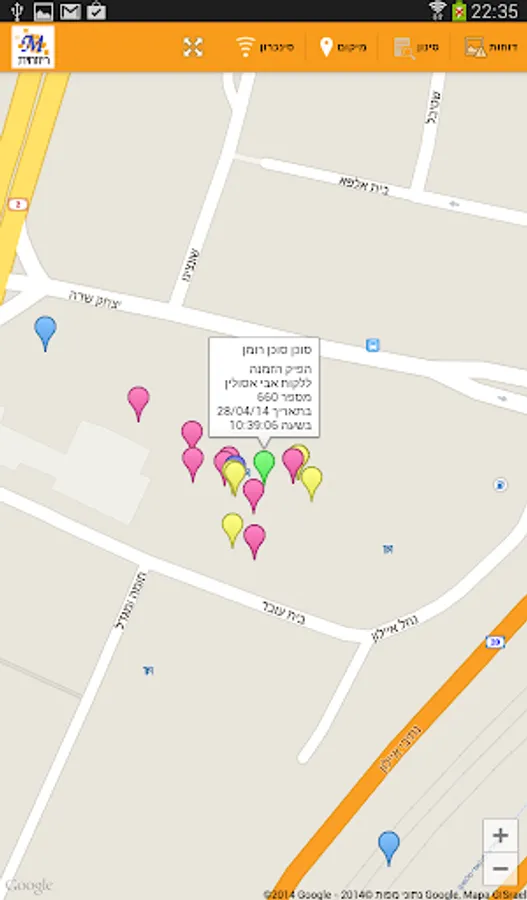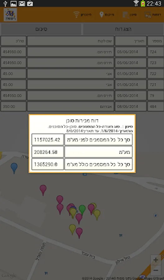 The application allows to see the geographical location of the production of documents on the map of Google.