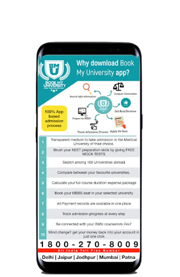 With BOOKMYUNIVERSITY App, you can choose the best medical university abroad and apply online. BOOKMYUNIVERSITY is an exclusive platform in the education domain that provides complete online-based admission for MBBS courses abroad.