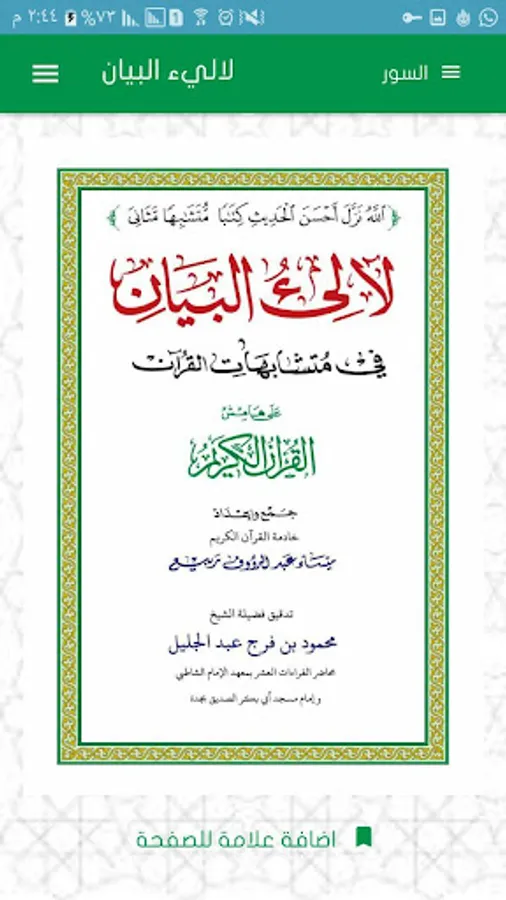والكتاب بيّن المتشابهات اللفظية لكامل آيات القرآن بطريقة ميسرة تسهل الرجوع إليها بجانب الآية الأصلية في ذات المصحف والكتاب.