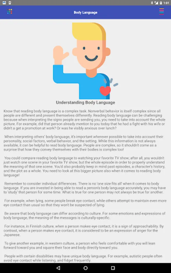 Welcome to "Body Language: The Art of Reading People"! This Android application is your ultimate guide to understanding and interpreting the subtle signals that people convey through their body language.