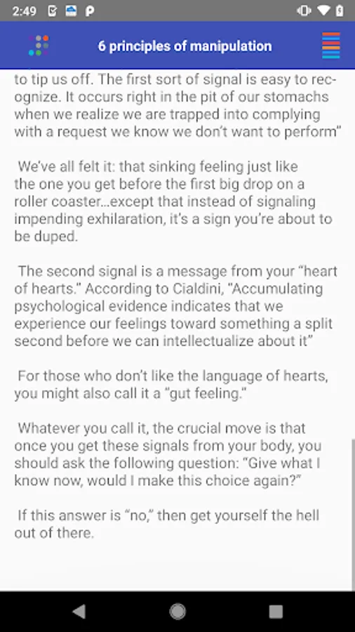 The 6 Principles of Manipulation is a powerful book that explores the art of persuasion and manipulation. This app is designed to provide a quick and easy reference guide to these principles, allowing you to master the art of manipulation and use it to your advantage.