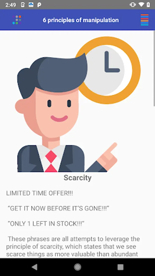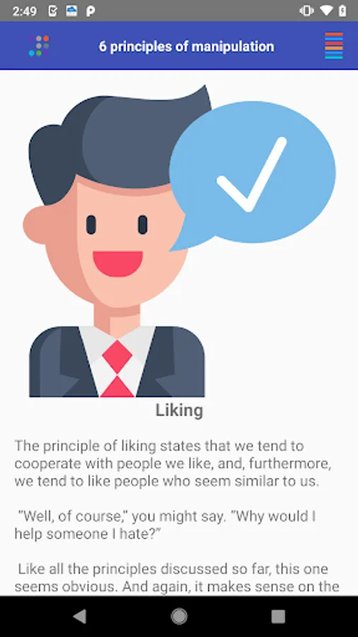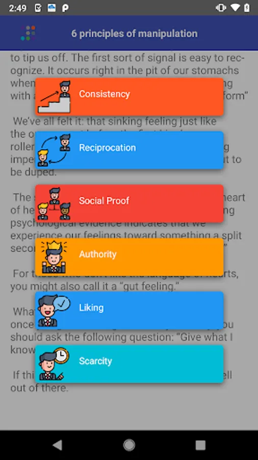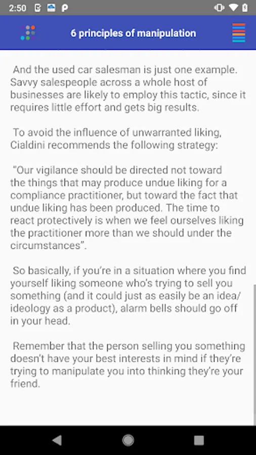 Whether you're looking to improve your sales skills, negotiate a better deal, or simply become more persuasive in your personal and professional life, the 6 Principles of Manipulation app is the perfect tool to help you achieve your goals. Download it today and start mastering the art of manipulation!