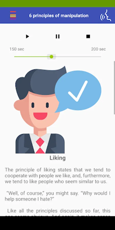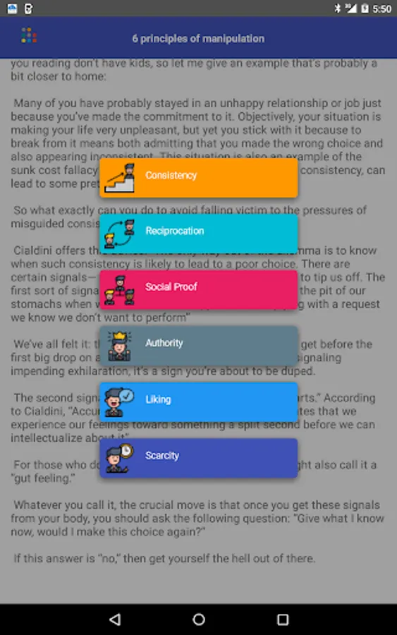 Inside the app, you will find a detailed explanation of each of the six principles, along with practical examples and exercises to help you apply them in real-life situations. You will learn how to influence and persuade others, how to control conversations and negotiations, and how to use psychology to get what you want.