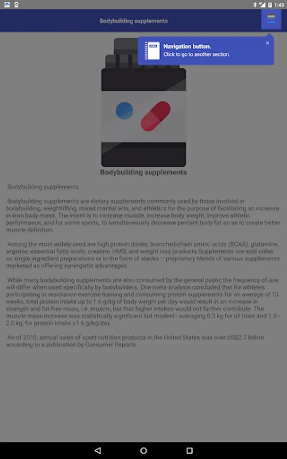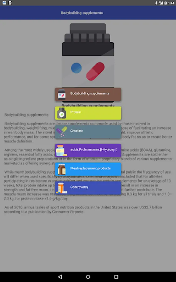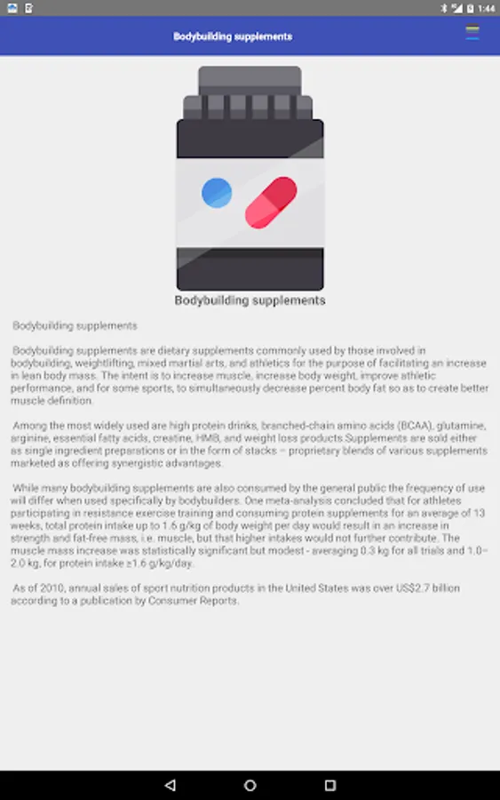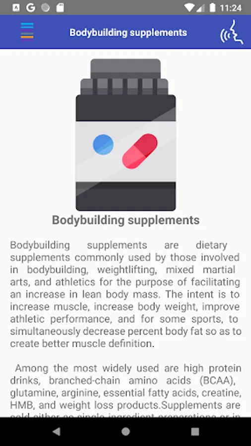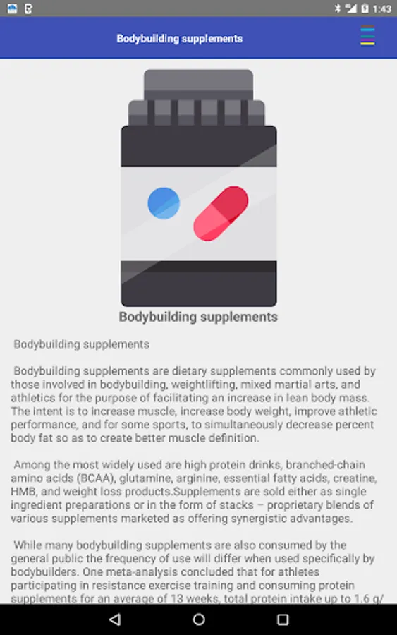 Bodybuilding supplements are dietary supplements commonly used by those involved in bodybuilding, weightlifting, mixed martial arts, and athletics for the purpose of facilitating an increase in lean body mass. The intent is to increase muscle, increase body weight, improve athletic performance, and for some sports, to simultaneously decrease percent body fat so as to create better muscle definition.