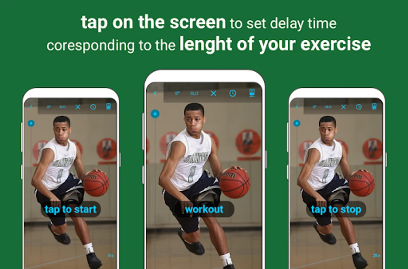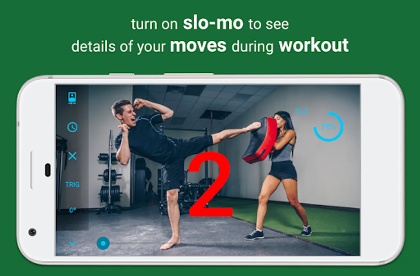 For quicker actions (~3 sec), like basketball shooting, golf swing, acrobatics, or martial arts press SLO to open slow-motion mode. Do your action, watch the replay & get ready for the next repetition when the countdown appears. You can adjust the slow-motion speed with a slider.