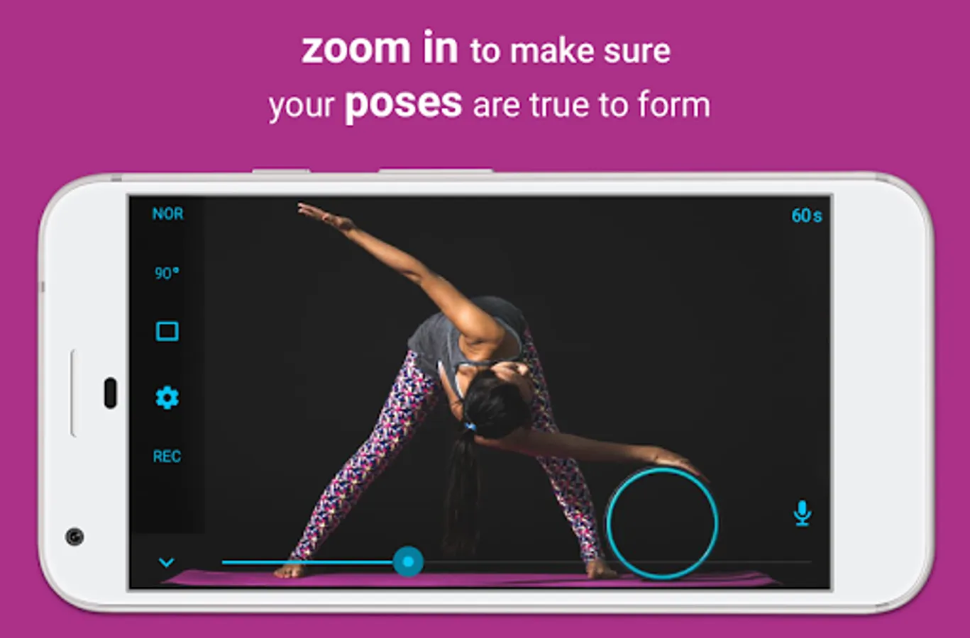 Use the slider to zoom in if you are watching your action from a distance. You can set as long buffer time as your device memory allows (yoga, TRX, gym, physiotherapy). In case you need a longer delay time, lower your camera resolution.