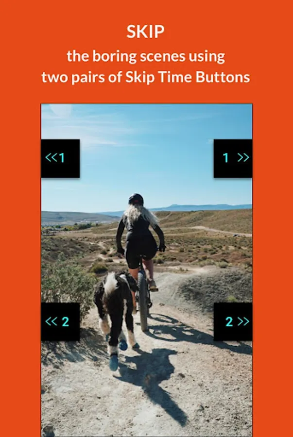 SEEK : Skip the boring scenes in the video with two pairs of adjustable Seek Buttons. Tap on the left to rewind or on the right to fast forward.