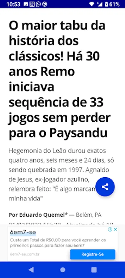 With the "BORA REMO" application, you stay on top of everything about the Blue Lion, the King of the Amazon.