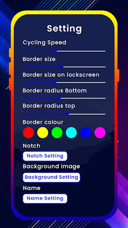 Border Edge Light - LED Color Live Wallpaper is show moving border on your mobile screen and display. Edge light border headlight is different form other regular live wallpapers. Personalization of your screen letting you to set notch live wallpaper with lighting screen borderlight live boundary lightbar with a single click.