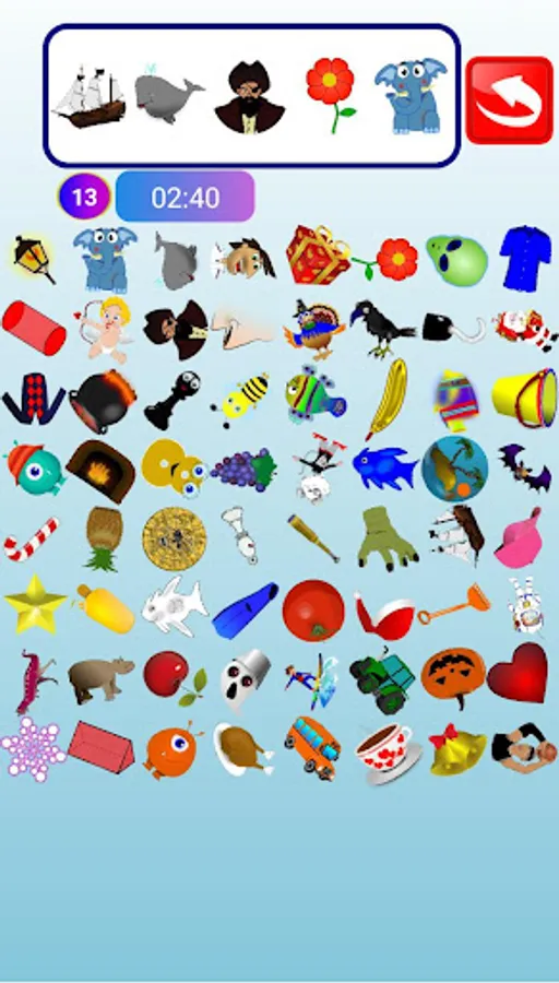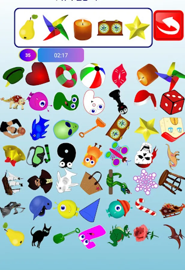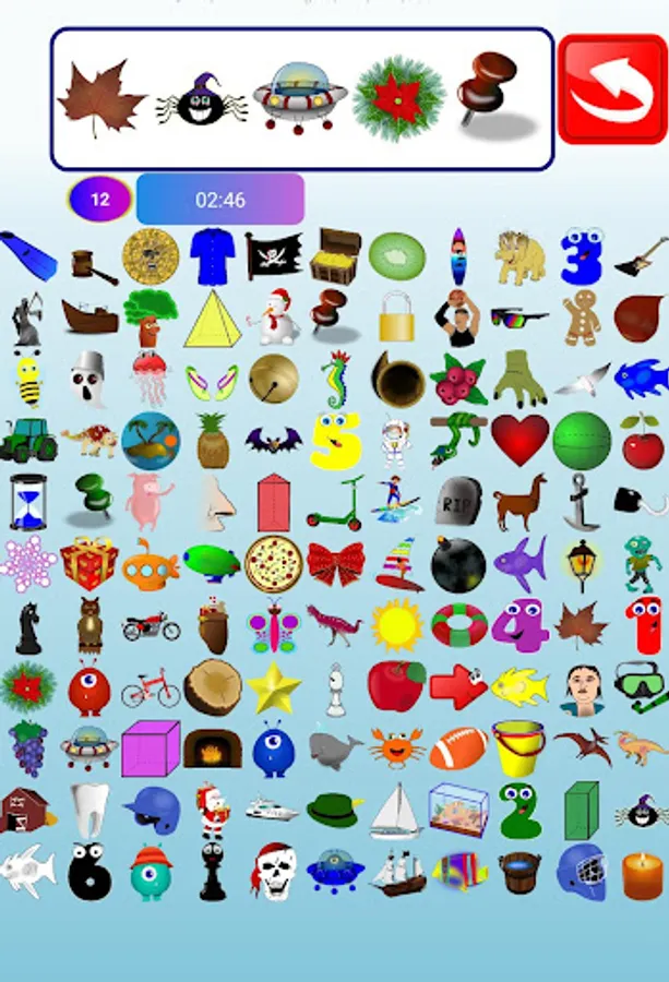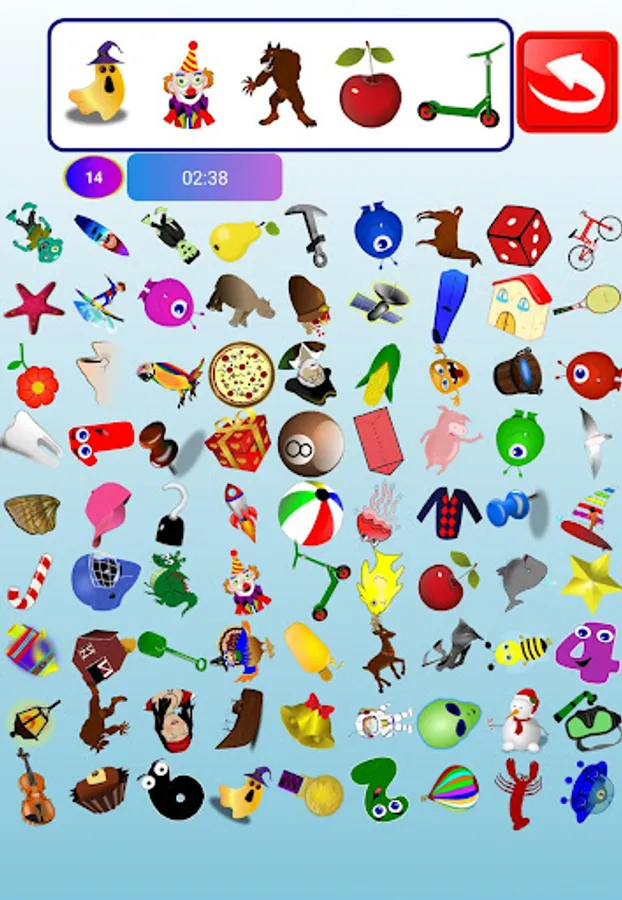 - CHALLENGE MODE : You must find 50 images in batches of five, starting to play a simple board and when you find change to a more complicated board, and so on. Will you be able to find 50 images ?