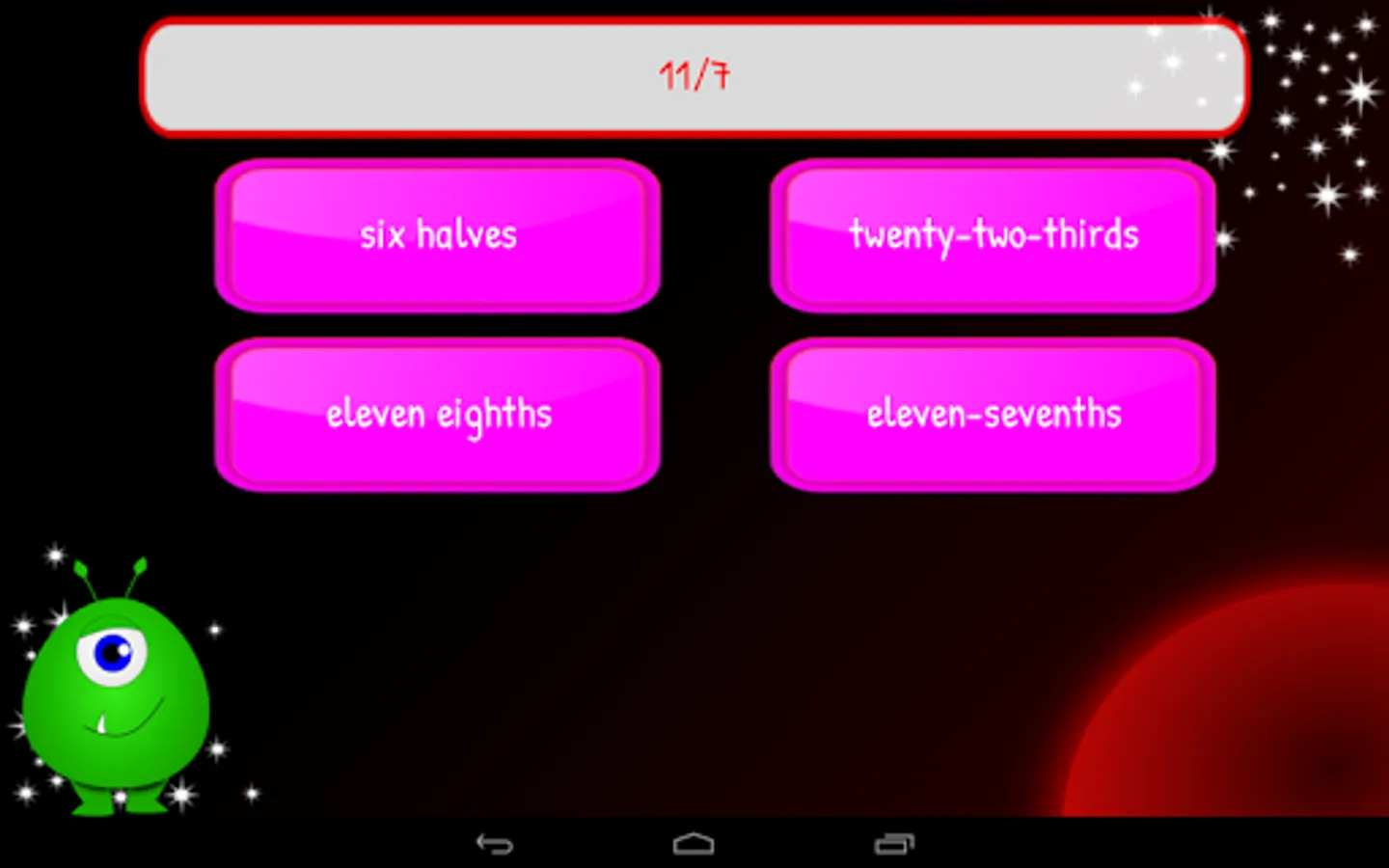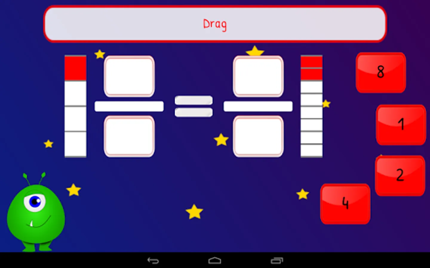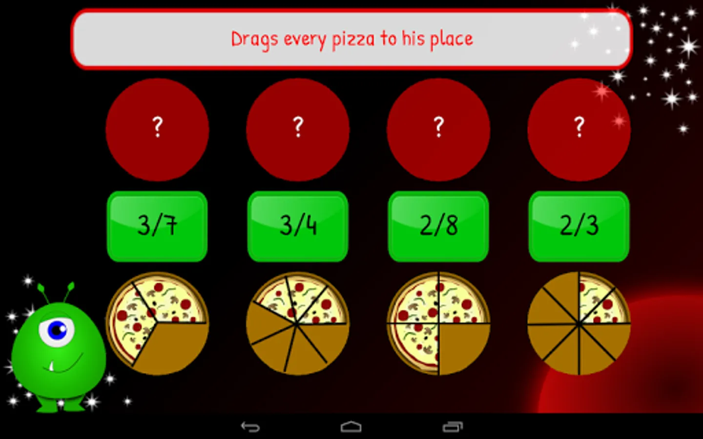 This app is designed to help you. Learn and practice the fractions with funny drawings.