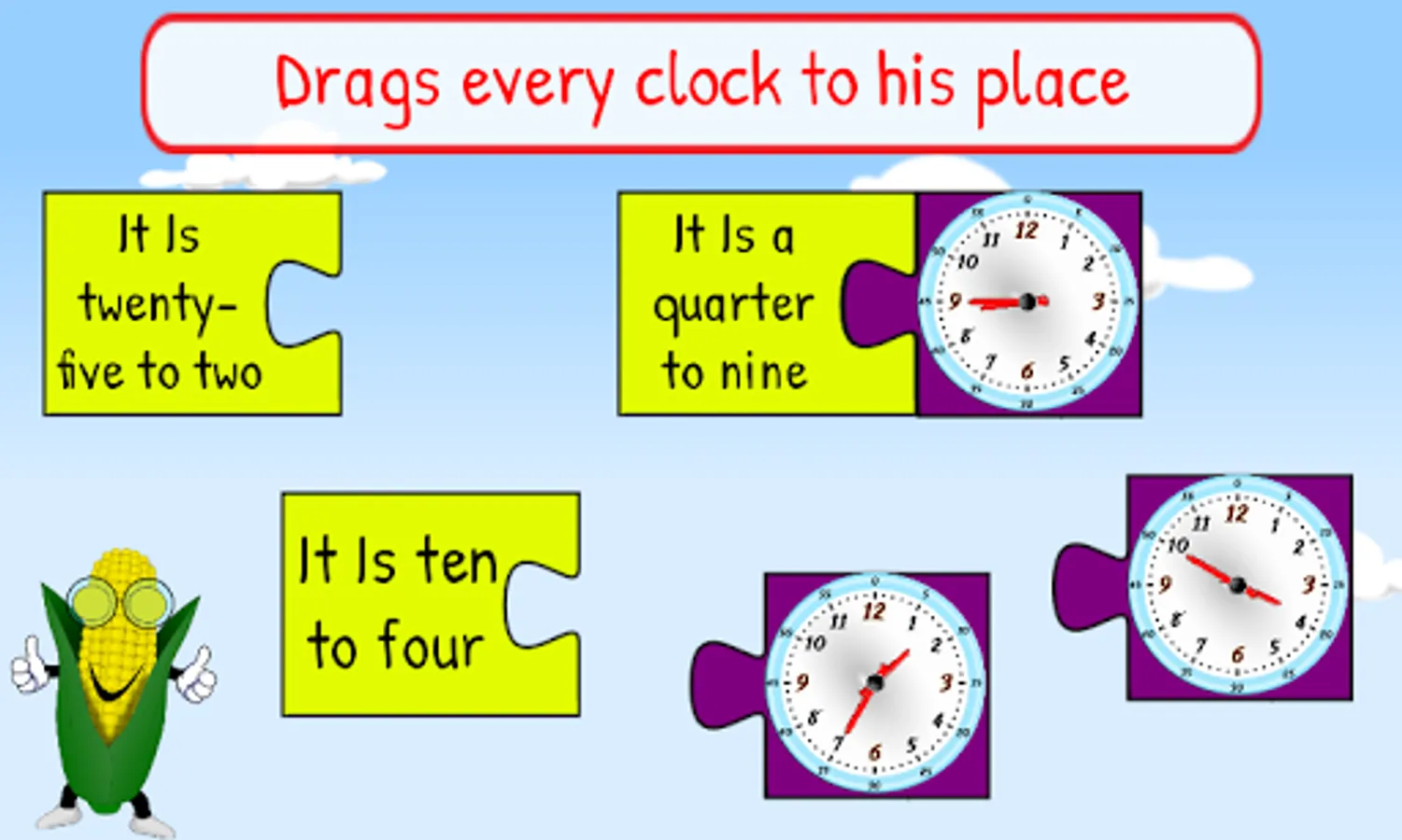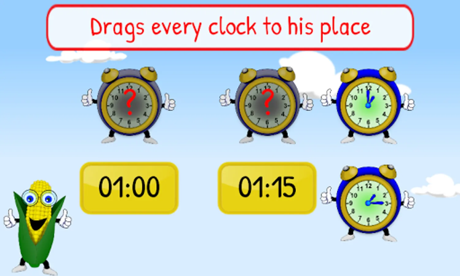Children can enjoy learning the hours, quarters and minutes and finally to mix everything with interactive activities and nice drawings. In addition, in the first activities they will have audio as help.