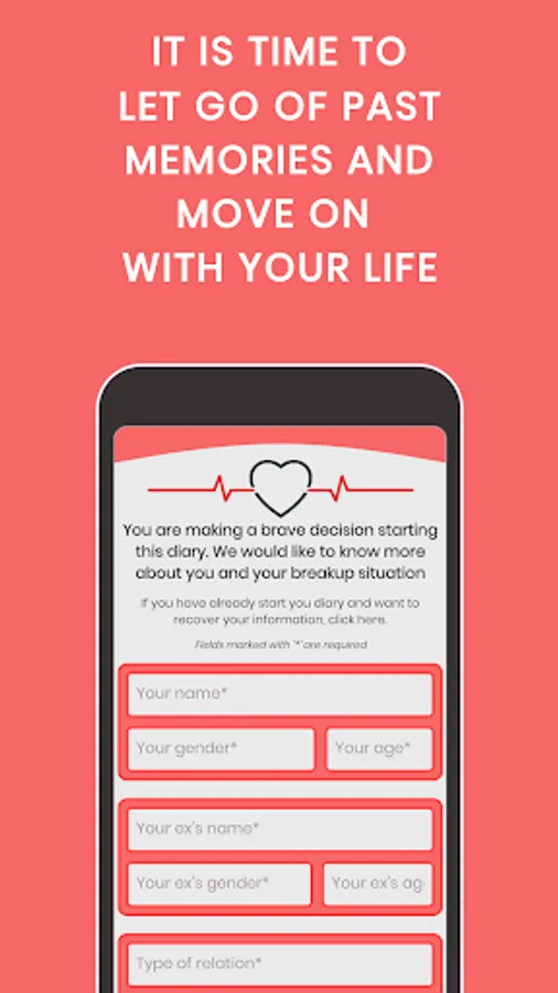 'Breakup Diary' gives you the chance to write all your feelings, all your thoughts, all the ideas you have in your mind, to release that heavy weight you have on you.