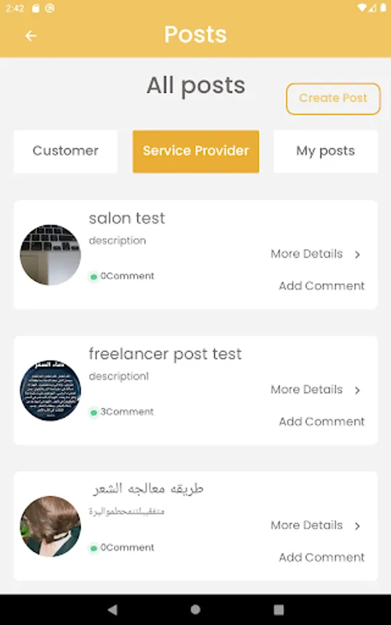 عناية رجالية ونسائية مع مراعاة أنه تم حصر جميع الخدمات في المجالات المذكورة ليسهل على المستخدم اختيار الخدمة وضع التسعيرة لكل خدمة )اختياري( وذلك حفاظا على خصوصية البيع لبعض الصوالين حسب الأعراف في كل دولة من دول الشرق الأوسط.