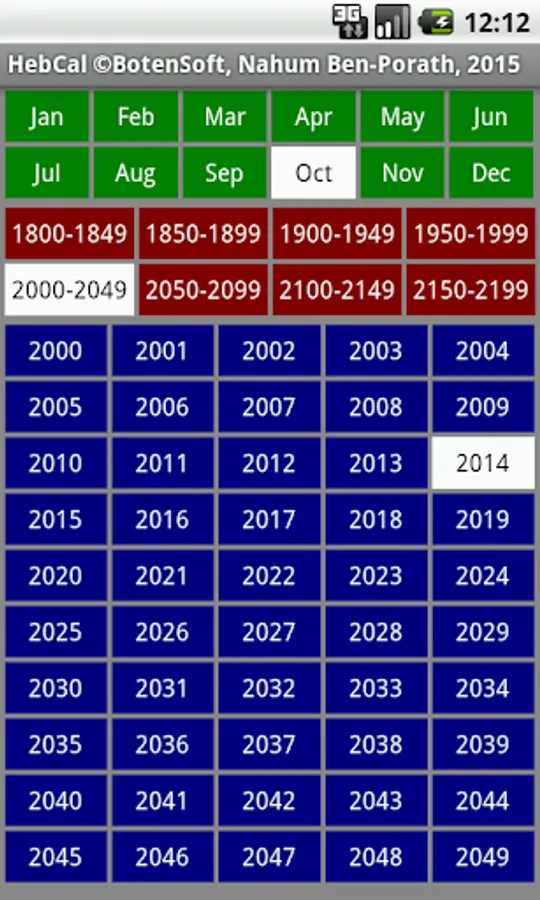 * Scroll years & months up and down, or use the menu to choose year / month.