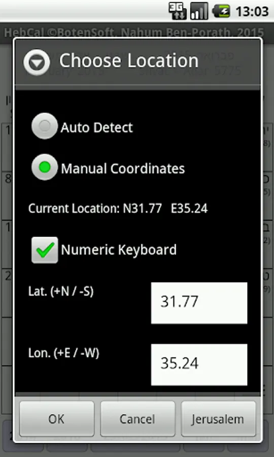 * Long Click on a date to show Sunrise/Sunset times and Moon phase.