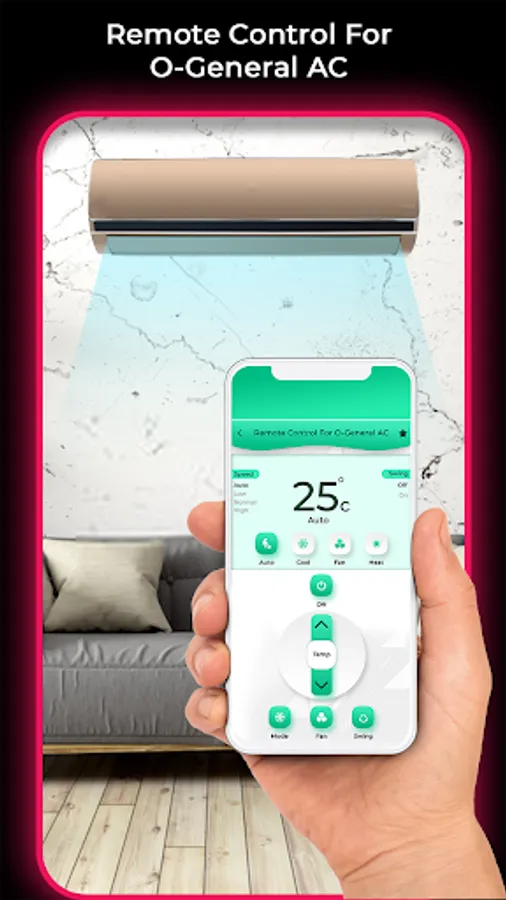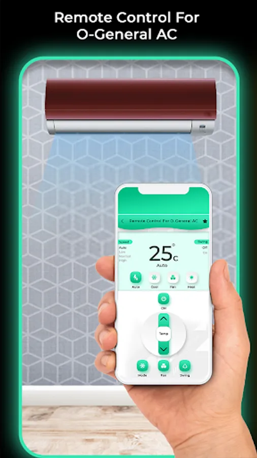 whenever and wherever you want. O'General AC Remote Control app with you can set the temperature and control various O'General air conditioning modes such as auto, cool, heat, fan and dry
