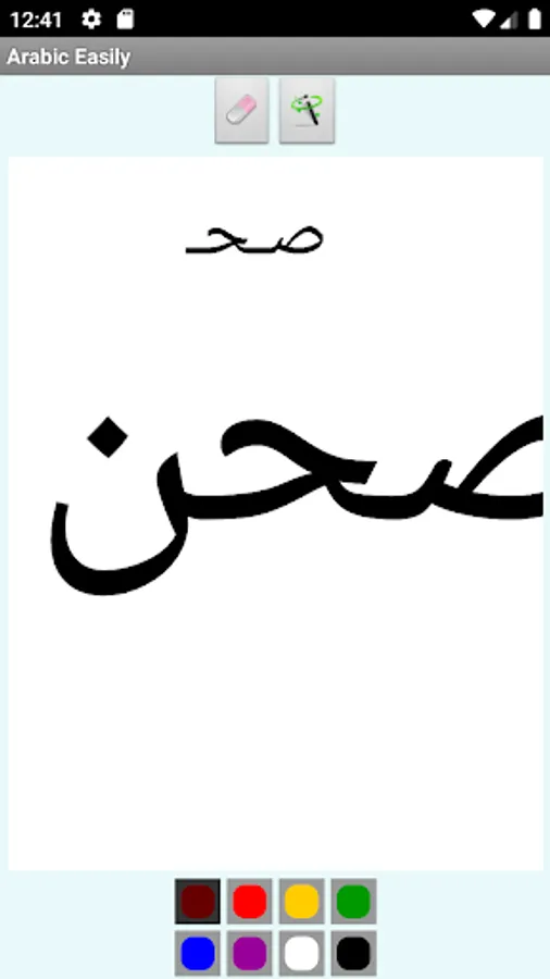 Write Arabic on your screen with guides on how to write the words. You can easily mark your improvements and corrections by choosing different colors for your writing. You can also listen to the audio of the words said by a native Arabic speaker.