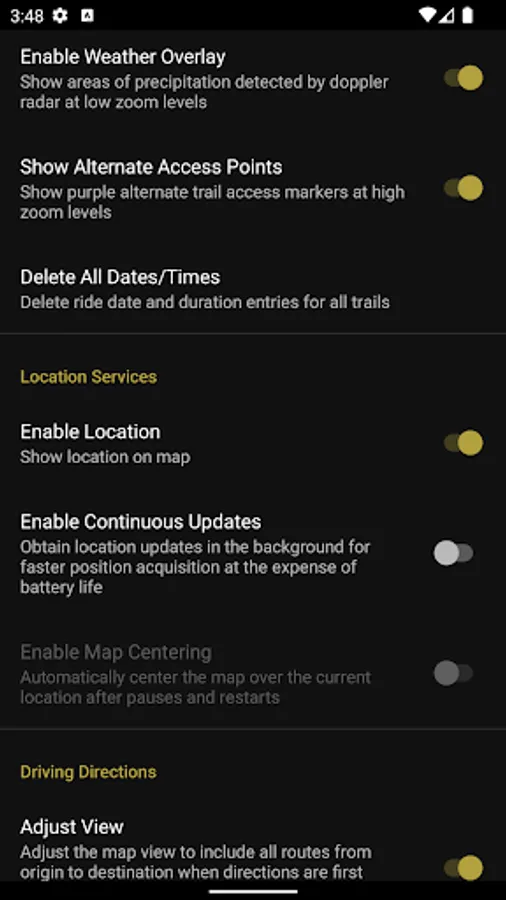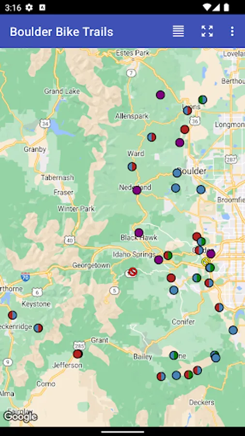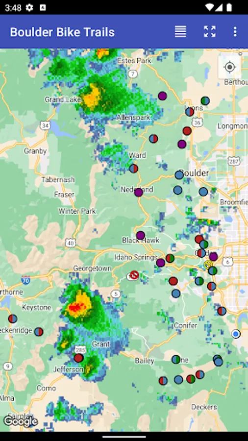 Choose from dozens of single-track mountain biking trails on an interactive map of the Boulder/Denver area of Colorado. Sections of the Colorado Trail between Denver and Breckenridge are also included, and are split out in such a way that every mile open to bikes can comfortably be ridden without missing any of what is arguably the best single-track in the area. Icons color coded by difficulty and trail status display custom trail information and links to driving directions when selected. Driving directions show the way to all of the main trail heads, and in some cases multiple secondary access points, using device location services. Primary and secondary trail maps are available for most rides. An alphabetical list provides a means to locate a trail on the map, visit its official website, and enter the date and duration of a ride. For more specific information, such as trail descriptions and photos, a separate more detailed trail list is included as well.